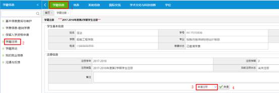 1、学生登录研究生信息管理系统(研究生院主页http://yjsy.hrbeu.edu.cn/,左侧“学生门户”,登陆账号为学号,密码为888888)→点击上方“学籍信息”→左侧“学期注册”,提交注册申请)。