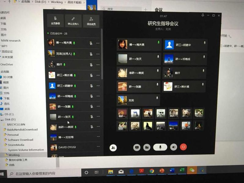 船舶学院秦洪德教授的团队利用假期,抓紧推进所承担的国家自然基金重点项目、工信部高技术船项目等科研项目。受疫情影响,相关工程实验环节无法开展,目前团队主要任务是完成各个项目的理论计算和基础研究工作。团队通过课题组微信群,进行语音电话、视频会议讨论,对于形成的一些进展性的文件和报告通过email互相传阅。秦洪德利用学校开通的数据库查阅资料,理论方面的工作进展顺利。