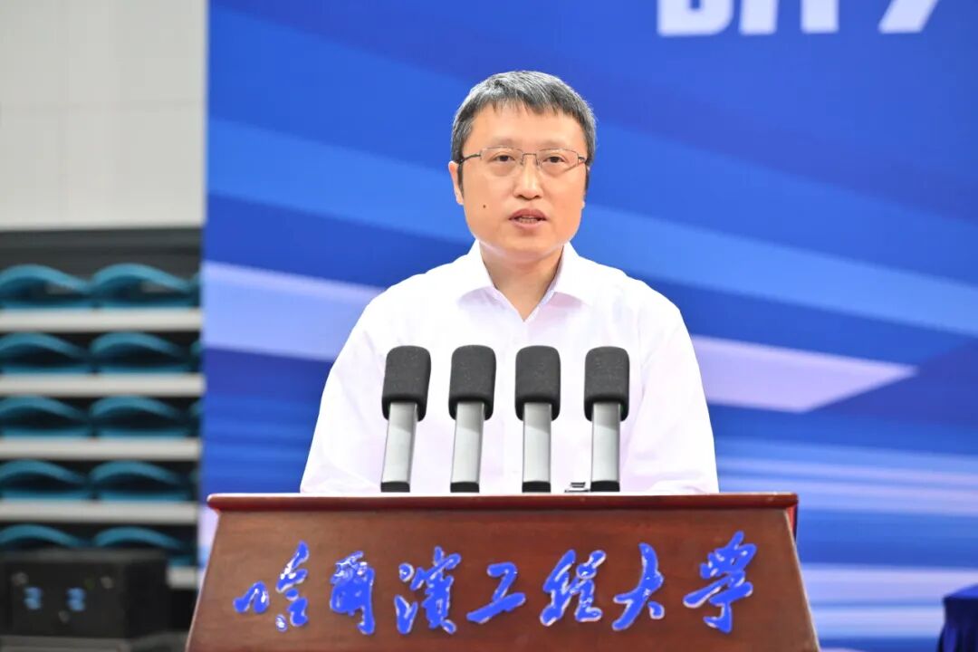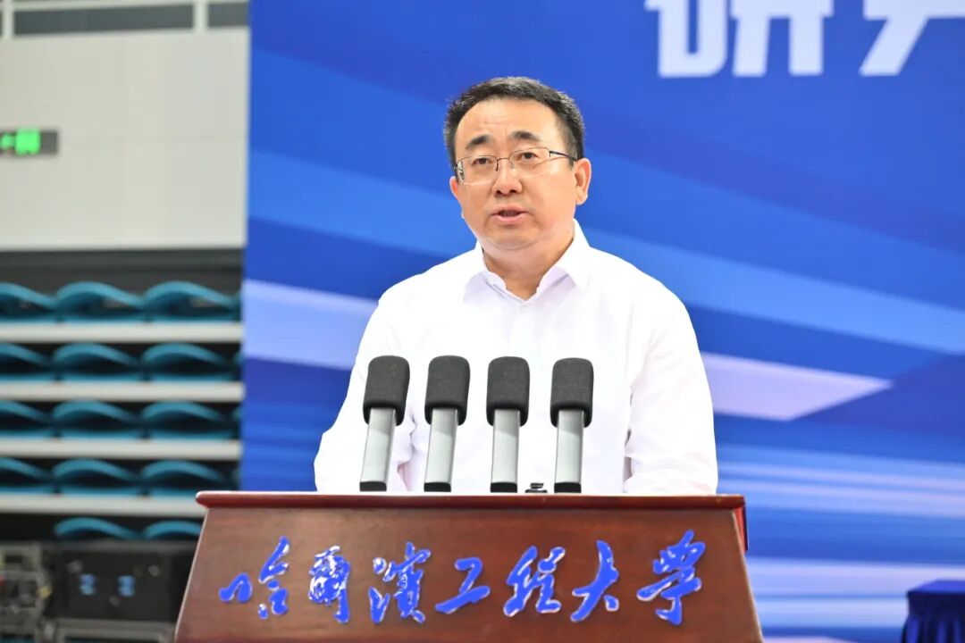 哈工程时期研究生代表、1999级硕士研究生、2000级博士研究生张海彬在发言中回顾了在学校学习和毕业后投身海洋强国建设的工作经历。他对学弟学妹提出三点期待。一是坚定报国志向、投身国家需求;二是不断追求卓越、筑牢成长根基;三是坚持开拓创新,敢于迎接挑战,在挑战和突破中实现人生价值。他希望同学们未来像“梦想”号一样,乘风破浪、扬帆远航。