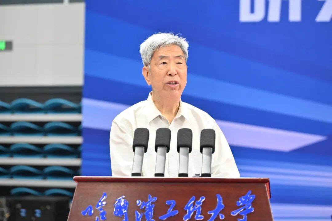 导师代表、哈工程研究生院首任院长杨德森院士在致辞中系统回顾了学校研究生教育的发展进程,并向2025级研究生表示热烈欢迎。他指出,1955年哈军工招收首批研究生,在全国率先开启研究生教育的探索,在高校教育史和国防科技的发展史上有重要意义。改革开放以来,我国研究生教育走出一条中国特色道路,2002年学校被批准成立研究生院,研究生教育在党和国家的支持下踏实前行,并得到快速发展。从哈军工到哈船院,再到哈工程,研究生教育取得了一系列显著成果,研究生教育工作者既光荣,又责任重大。进入新时代,要深入学习贯彻党的二十大和二十届二中、三中全会精神,学习贯彻习近平总书记关于教育的重要论述,在自主创新培养人才上下大功夫。青年学子要牢记习近平总书记重要嘱托,为“两个一百年”奋斗目标,为实现中华民族伟大复兴努力拼搏。